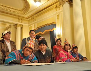 Evo Morales and representatives of Aymara Indians sign accord to revoke “all the mining concessions registered in the name of Compañia Minera Mallku Khota.”