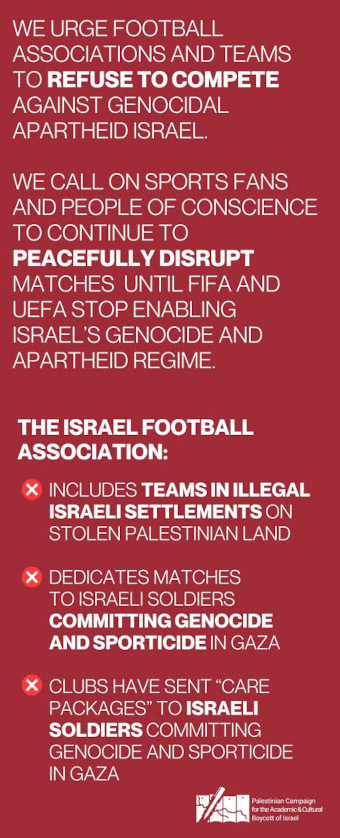 As the Israeli team prepare to face Norway and Italy in their upcoming World Cup qualifiers on 11 and 14 October 2026, FIFA’s resistance to calls for action, under the pretence of impartiality, exposes its alignment with global power. Pressure continues to mount from across the world: the Spanish Prime Minister has publicly called for Israel’s suspension from international sports, while the Turkish Football Federation has urged national soccer federations to demand that FIFA impose a ban. Soccer fans, too, have unfurled Palestinian flags and banners in stadiums demanding an end to Israel’s participation. In response, FIFA has recently doubled down on its inaction, invoking peace without justice and turning neutrality into an active political choice to protect Israel.