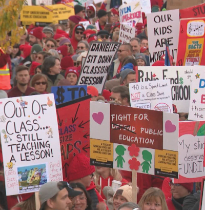 It was clear from the outset of the teachers’ strike that the UCP was not in the mood to negotiate a settlement. It immediately locked out teachers, exacerbating the effects of the strike by eliminating the possibility of more moderate job actions like rotating strikes. Bill 2 imposed a contract on teachers, so there was no need to try mediation or binding arbitration to settle the dispute. Teachers and their union faced fines of $500 and $500,000 a day respectively if the strike continued.